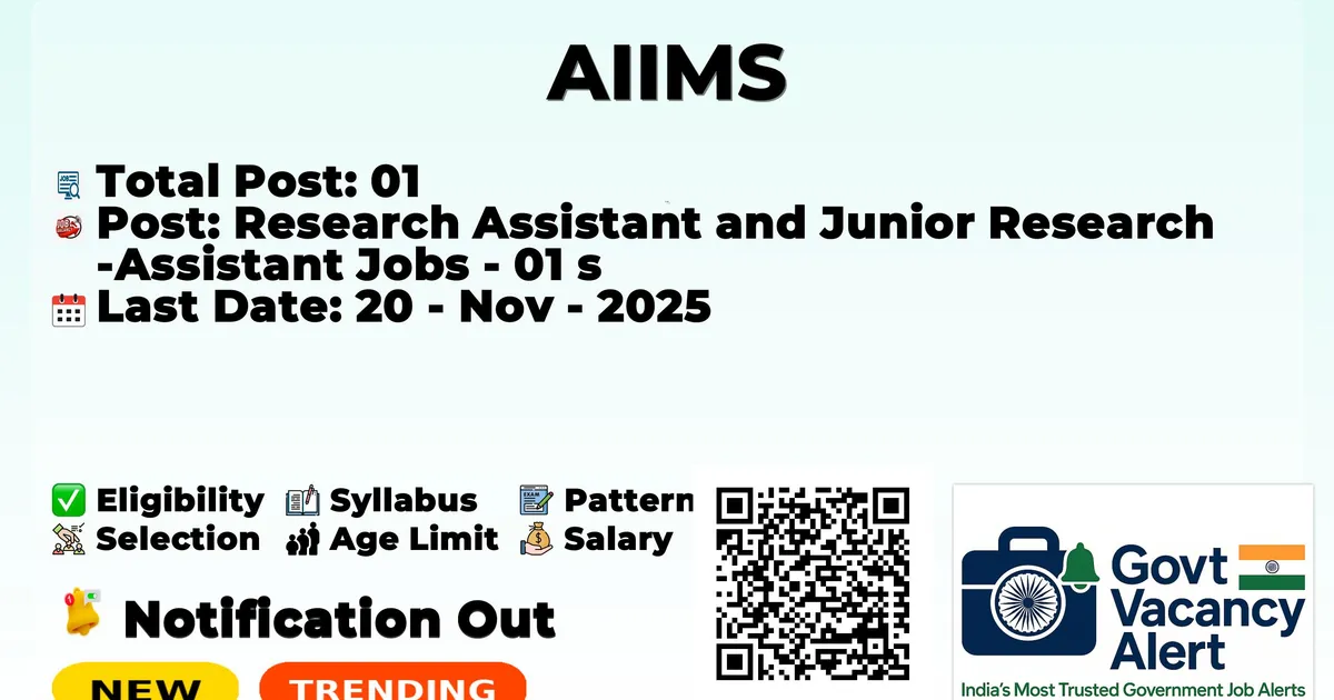 AIIMS — Research Assistant and Junior Research Assistant Jobs - 01 Posts