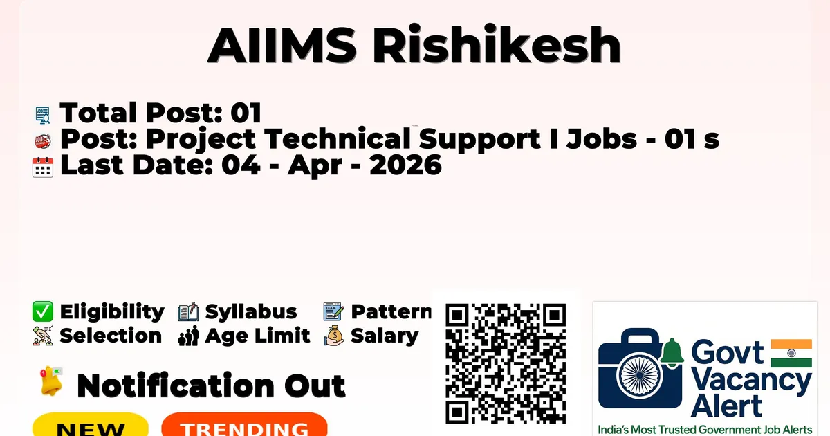 The All India Institute of Medical Sciences, Rishikesh (AIIMS Rishikesh) has officially released the notification to fill the vacancies of 01 Project Technical Support I Posts. Interested and eligibile candidates can use this opportunity to apply for these posts before the last date of application. Candidates who have completed their 10th, Diploma, DMLT, Any Degree, and ITI can apply for the AIIMS Rishikesh Jobs 2026. The interested applicants can apply in offline mode. Here we have mentioned the education details, age limit, selection process, application fee, salary, and how to apply for these posts before the deadline. The application dates have already begun.