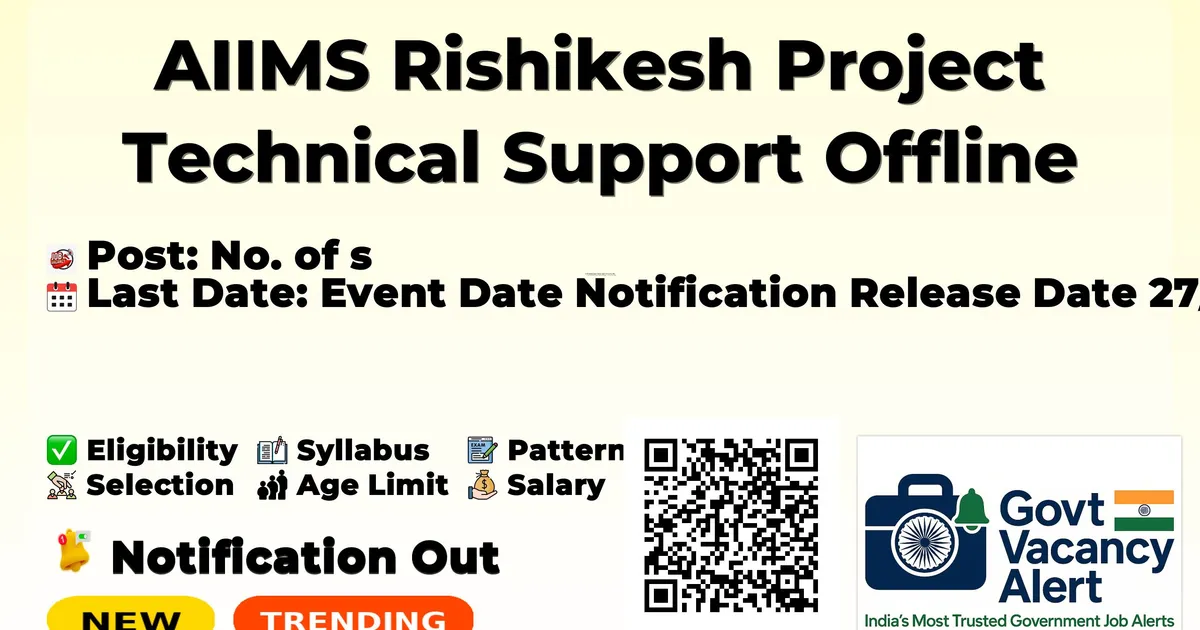 All India Institute of Medical Sciences Rishikesh (AIIMS Rishikesh) has released an official notification for the recruitment of 03 Project Technical Support Posts. Interested and eligible candidates can apply Offline through the official AIIMS Rishikesh website. The last date to submit the application form is 07-12-2025. In this article, you’ll find the AIIMS Rishikesh Project Technical Support Posts recruitment details, including eligibility criteria, age limit, salary structure, selection process, application steps, and direct links to the official notification and Offline application form.