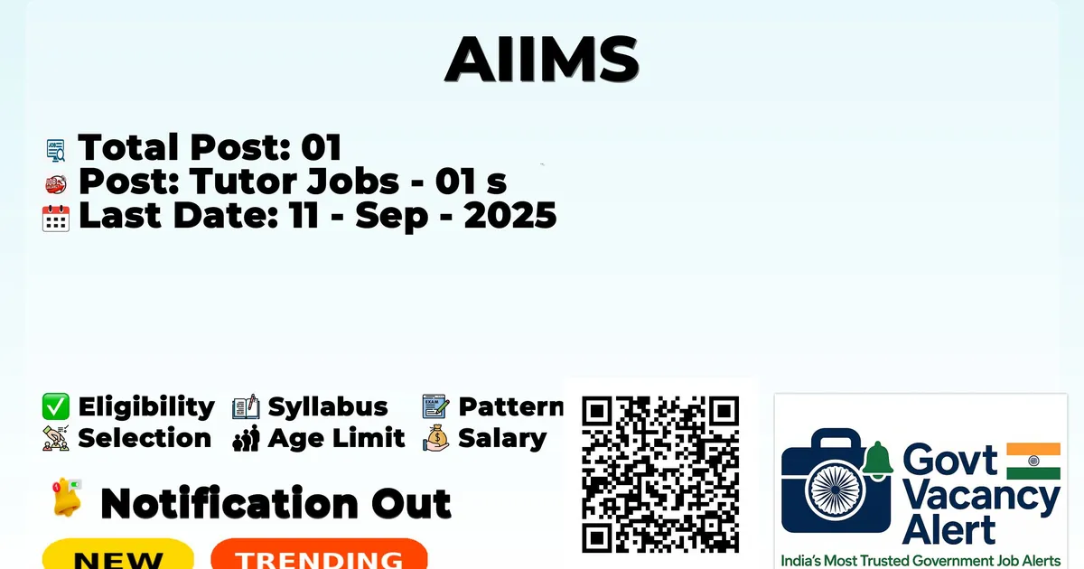 All India Institute of Medical Sciences (AIIMS) Kalyani has announced the official notification for 2025. To fill up the vacancies for Tutor Jobs. Those candidates who have qualified in the MBBS can grab this chance and apply for the AIIMS Kalyani Recruitment 2025. Here we include the age limit, selection process, salary structure, education details, application fee, and hw to apply for these posts. Interested and eligible candidates can attend the interview at the given venue below.