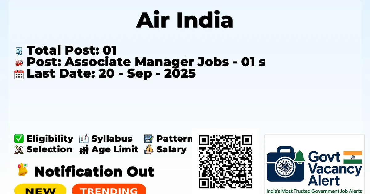 Air India Limited has officially released the notification to fill the vacancies of 01 Associate Manager Posts. Interested and eligible candidates can use this opportunity to apply for these posts before the last date of application. Candidates who have completed Any Degree can apply for the Air India Limited Recruitment 2025. The interested applicants can apply in online mode. Here we have mentioned the education details, age limit, selection process, application form, salary, and how to apply for these posts before the deadline. The application dates have already begun.