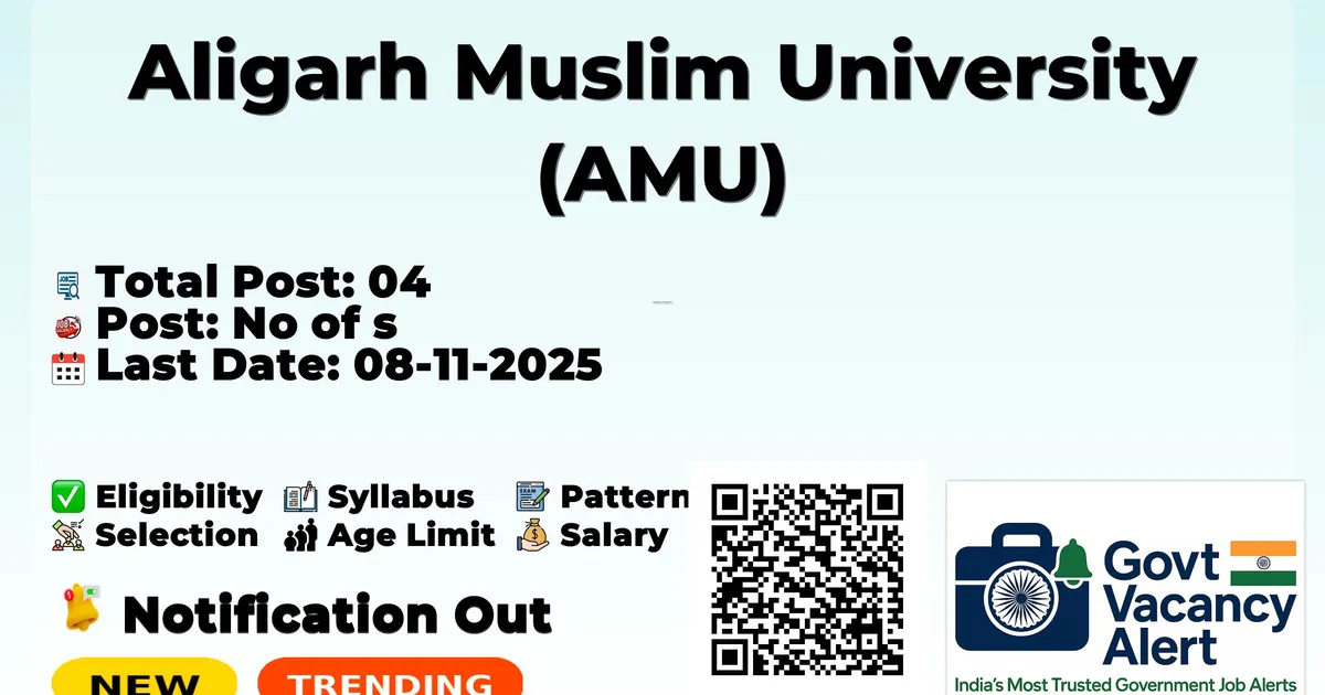 Aligarh Muslim University (AMU) has released an official notification for the recruitment of 04 Senior Resident/ Tutor Posts. Interested and eligible candidates can apply Online through the official AMU website. The last date to submit the application form is 08-11-2025. In this article, you’ll find the AMU Senior Resident/ Tutor Posts recruitment details, including eligibility criteria, age limit, salary structure, selection process, application steps, and direct links to the official notification and Online application form.