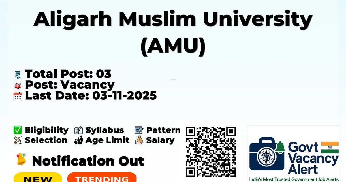 Aligarh Muslim University (AMU) has released an official notification for the recruitment of 03 Assistant Professor, Senior Resident Posts. Interested and eligible candidates can apply Online through the official AMU website. The last date to submit the application form is 03-11-2025. In this article, you’ll find the AMU Assistant Professor, Senior Resident Posts recruitment details, including eligibility criteria, age limit, salary structure, selection process, application steps, and direct links to the official notification and Online application form.