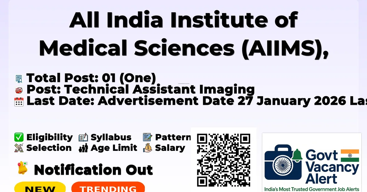 All India Institute of Medical Sciences Kalyani (AIIMS Kalyani) has released an official notification for the recruitment of 01 Technical Assistant Imaging Posts. Interested and eligible candidates can apply Online through the official AIIMS Kalyani website. The last date to submit the application form is 02-02-2026. In this article, you’ll find the AIIMS Kalyani Technical Assistant Imaging Posts recruitment details, including eligibility criteria, age limit, salary structure, selection process, application steps, and direct links to the official notification and Online application form.