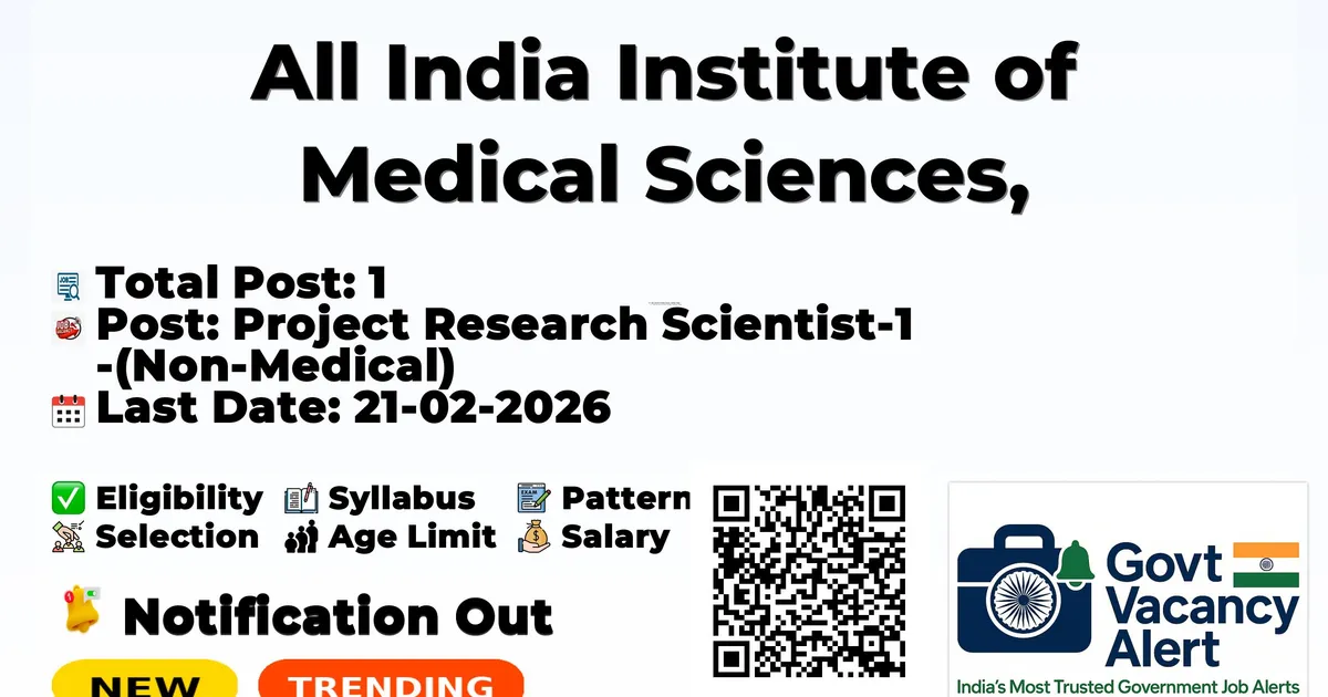 All India Institute of Medical Sciences Bathinda (AIIMS Bathinda) has released an official notification for the recruitment of 01 Project Research Scientist Posts. Interested and eligible candidates can apply Online through the official AIIMS Bathinda website. The last date to submit the application form is 21-02-2026. In this article, you’ll find the AIIMS Bathinda Project Research Scientist Posts recruitment details, including eligibility criteria, age limit, salary structure, selection process, application steps, and direct links to the official notification and Online application form.