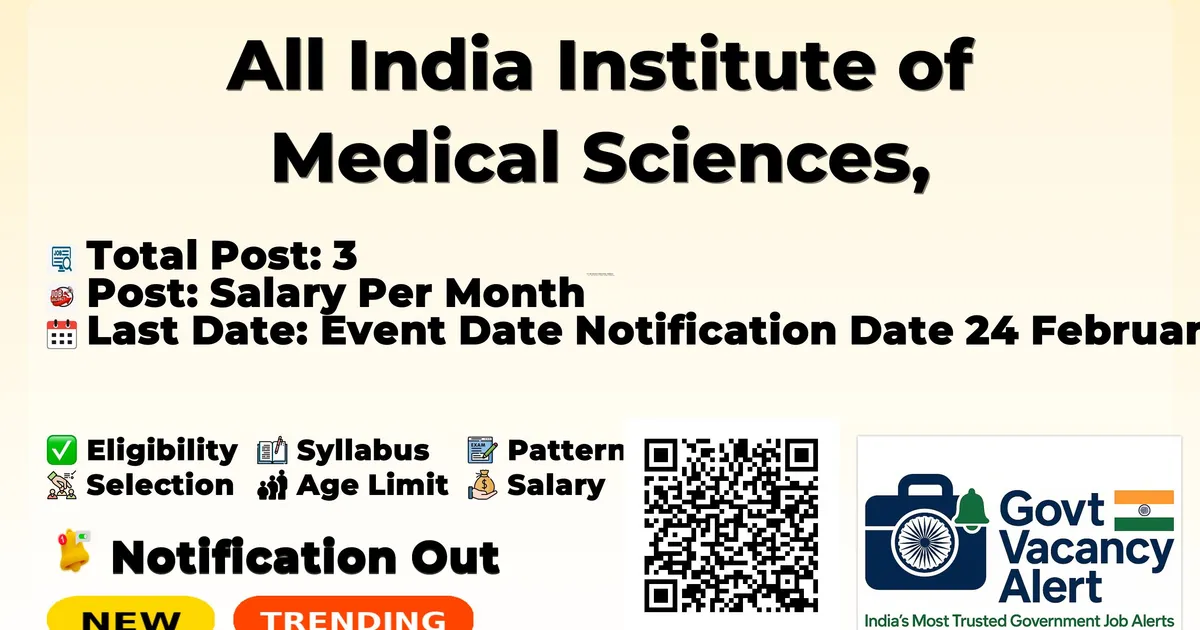 All India Institute of Medical Sciences, Bhubaneswar (AIIMS Bhubaneswar) has released an official notification for the recruitment of 3 Posts. Interested and eligible candidates can apply Online through the official AIIMS Bhubaneswar website. The last date to submit the application form is 07-03-2026.