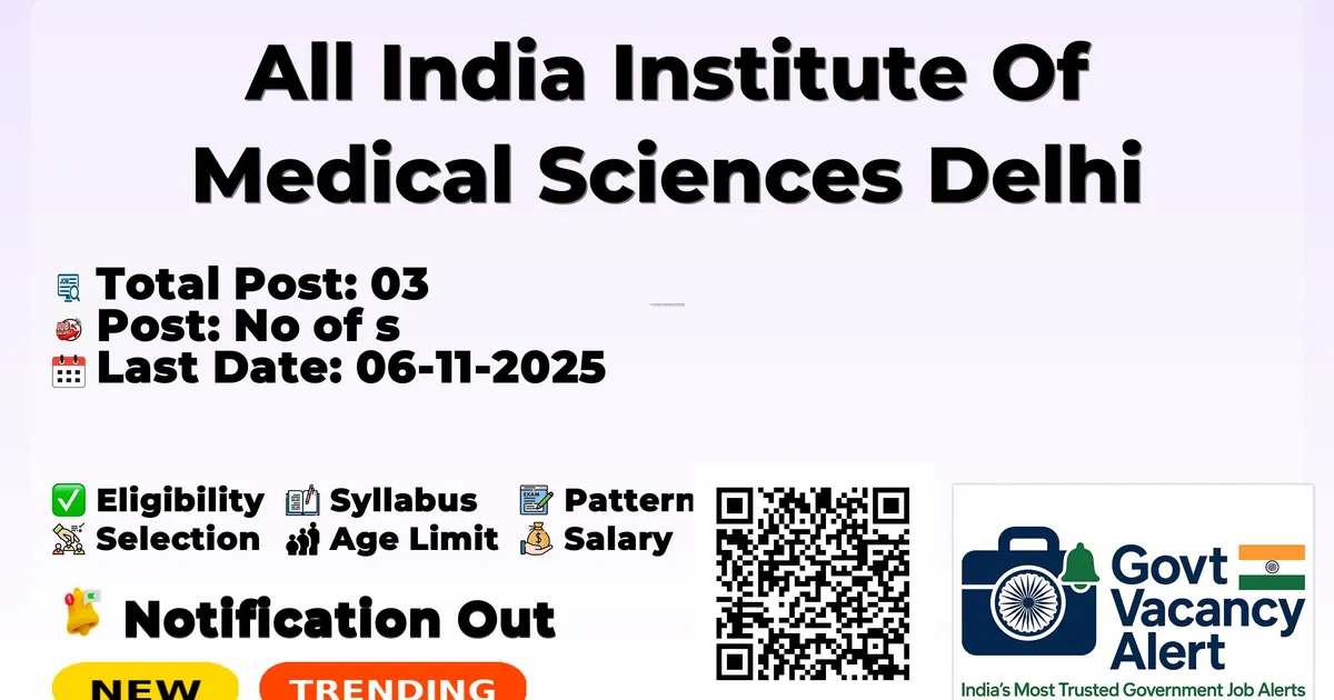 Company Name All India Institute Of Medical Sciences Delhi (AIIMS Delhi) Post Name Project Technical Support II No of Posts 03 Pay Matrix Rs.20,000 Qualification Graduate Start Date for Apply Online 22-10-2025 Last Date for Apply Online 06-11-2025 Official Website aiims.edu
