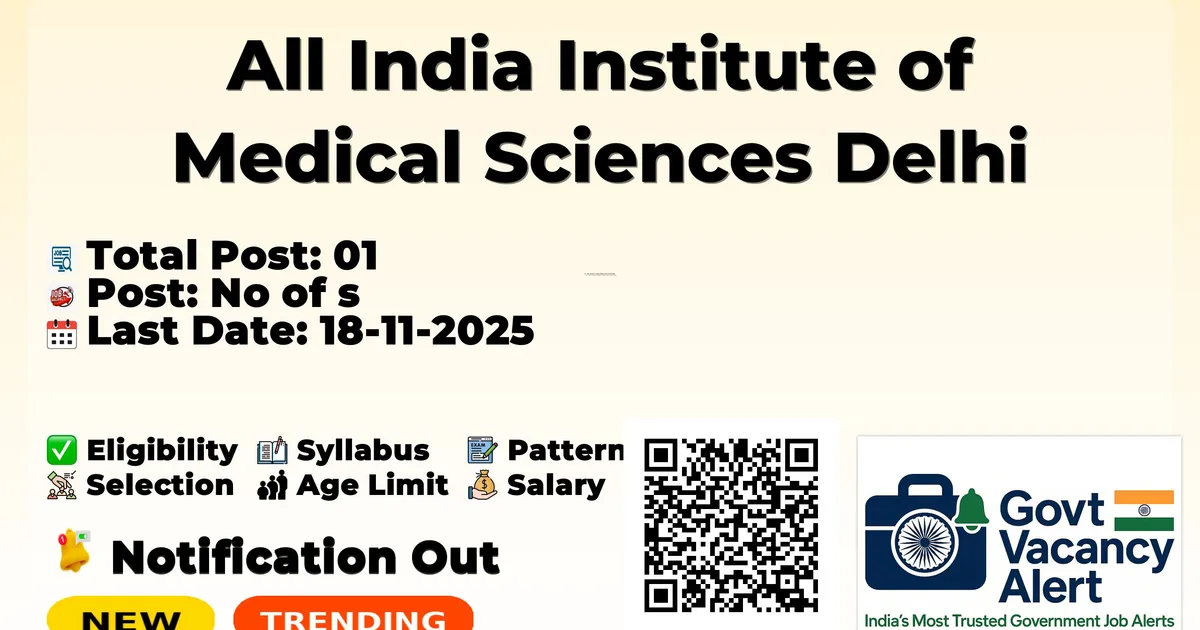 All India Institute of Medical Sciences Delhi (AIIMS Delhi) has released an official notification for the recruitment of 01 Project associate I Posts. Interested and eligible candidates can apply Offline through the official AIIMS Delhi website. The last date to submit the application form is 18-11-2025. In this article, you’ll find the AIIMS Delhi Project associate I Posts recruitment details, including eligibility criteria, age limit, salary structure, selection process, application steps, and direct links to the official notification and Offline application form.