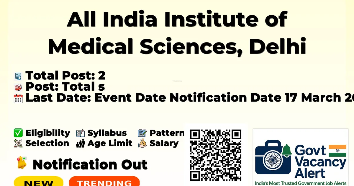 All India Institute of Medical Sciences, Delhi (AIIMS Delhi) Project Research Scientist I (Non-Medical) Notification 2026 has been released on 17 March 2026 on the official website https://aiims.edu . A total of 2 vacancies have been announced through the AIIMS Delhi Project Research Scientist I (Non-Medical) Recruitment 2026.