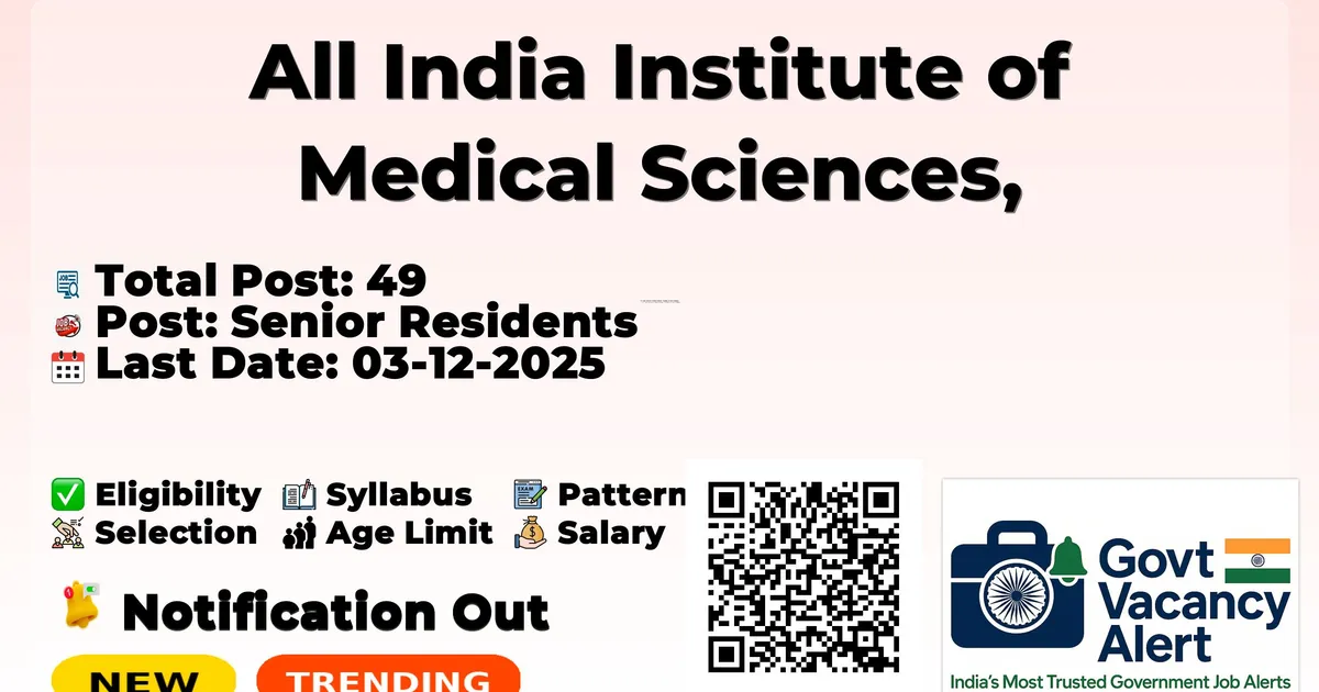 Company Name All India Institute of Medical Sciences, Gorakhpur (AIIMS Gorakhpur) Post Name Senior Residents No of Posts 49 Salary ₹67,700 (Level-11) + allowances including NPA Per Month Qualification Postgraduate Medical Degree in respective discipline Age Limit Upper age limit 45 years Last Date for Apply 03-12-2025 Official Website http://www.aiimsgorakhpur.edu.in