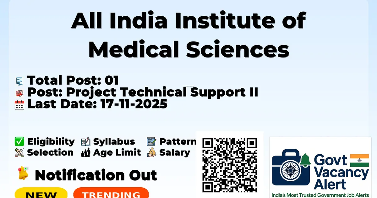 All India Institute of Medical Sciences Guwahati (AIIMS Guwahati) has released an official notification for the recruitment of 01 Project Technical Support II Posts. Interested and eligible candidates can apply Online through the official AIIMS Guwahati website. The last date to submit the application form is 17-11-2025. In this article, you’ll find the AIIMS Guwahati Project Technical Support II Posts recruitment details, including eligibility criteria, age limit, salary structure, selection process, application steps, and direct links to the official notification and Online application form.