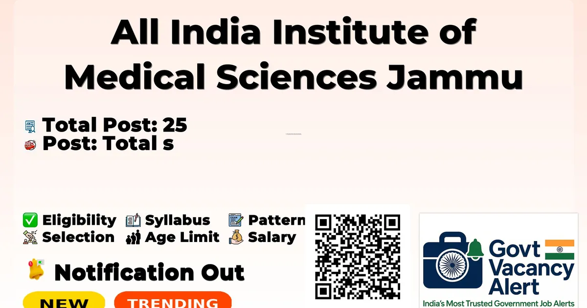 Company Name All India Institute of Medical Sciences Jammu (AIIMS Jammu) Post Name Junior Resident (Non-Academic) No of Posts 25 Advt No AIIMS/JMU/Rec.JR/2026/01 Salary Rs 56100/- Qualification MBBS with Medical Council Registration Age Limit 33 years (with relaxations) Last Date 17-03-2026 Apply Mode Online Job Type Contract