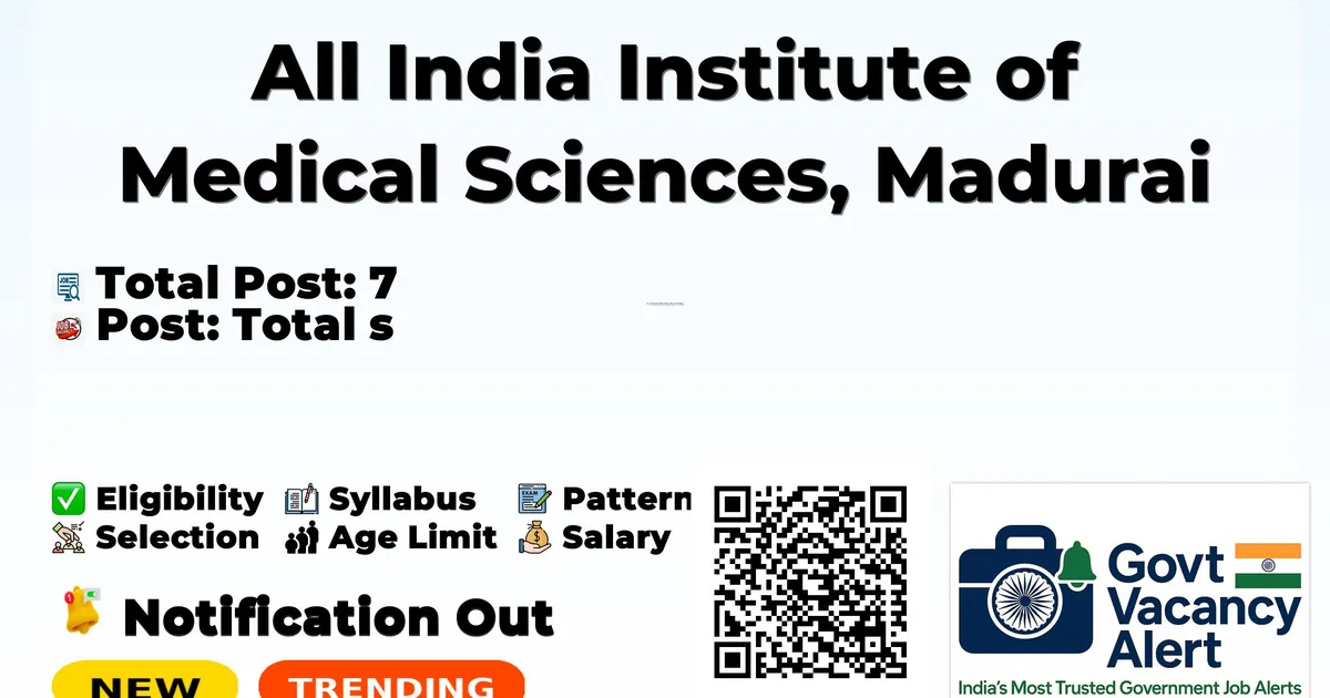 All India Institute of Medical Sciences, Madurai (AIIMS Madurai) Recruitment 2026: All India Institute of Medical Sciences, Madurai has released the official notification for 7 Senior Resident (Non-Academic) posts, inviting applications from eligible candidates in Tamil Nadu. This recruitment provides an excellent opportunity for candidates seeking stable and well-paid healthcare jobs.
