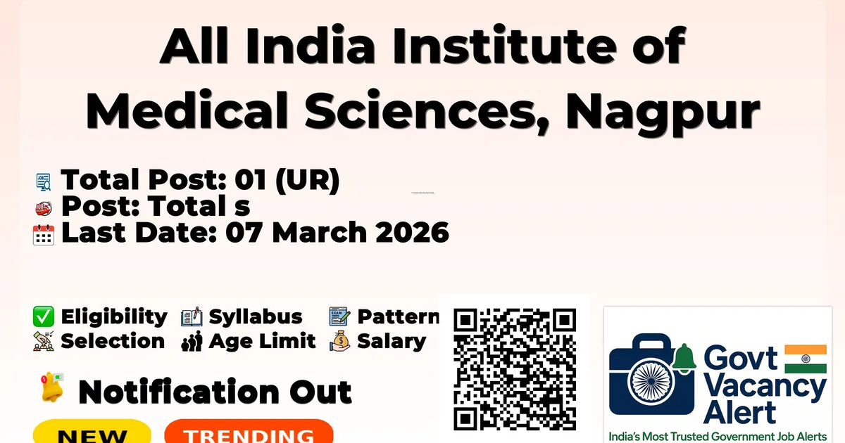 All India Institute of Medical Sciences Nagpur (AIIMS Nagpur) has released an official notification for the recruitment of 01 Senior Resident Posts. Interested and eligible candidates can apply Online through the official AIIMS Nagpur website. The last date to submit the application form is 07-03-2026. In this article, you’ll find the AIIMS Nagpur Senior Resident Posts recruitment details, including eligibility criteria, age limit, salary structure, selection process, application steps, and direct links to the official notification and Online application form.