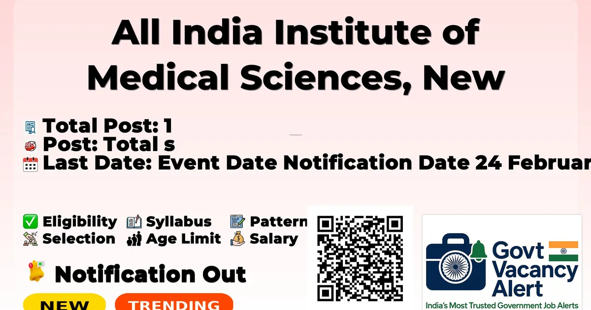 Company Name All India Institute of Medical Sciences, New Delhi Post Name Project Research Scientist-I (Medical) No of Posts 1 Salary Rs. 87100 Consolidated Qualification MBBS/BDS Age Limit Min: 18 years, Max: 35 years Last Date 05-03-2026 Apply Mode Online Job Type Contract
