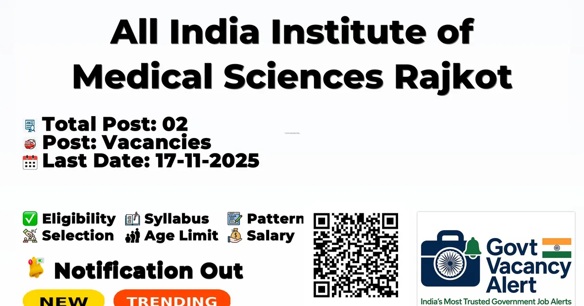 All India Institute of Medical Sciences Rajkot (AIIMS Rajkot) has released an official notification for the recruitment of 02 Senior Program Coordinator, Technical Officer Posts. Interested and eligible candidates can apply Online through the official AIIMS Rajkot website. The last date to submit the application form is 17-11-2025. In this article, you’ll find the AIIMS Rajkot Senior Program Coordinator, Technical Officer Posts recruitment details, including eligibility criteria, age limit, salary structure, selection process, application steps, and direct links to the official notification and Online application form.