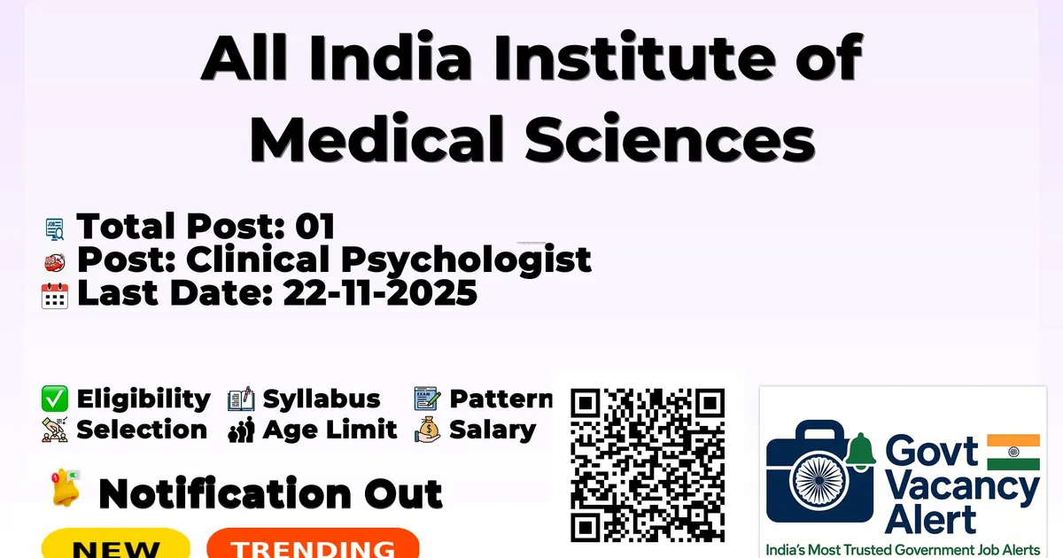 All India Institute of Medical Sciences Rishikesh (AIIMS Rishikesh) has released an official notification for the recruitment of 01 Clinical Psychologist Posts. Interested and eligible candidates can apply Offline through the official AIIMS Rishikesh website. The last date to submit the application form is 22-11-2025. In this article, you’ll find the AIIMS Rishikesh Clinical Psychologist Posts recruitment details, including eligibility criteria, age limit, salary structure, selection process, application steps, and direct links to the official notification and Offline application form. Join Arattai Channel Trending Govt Jobs KVS and NVS 14967 Teaching and Non Teaching Online Form 2025 SAIL 124 Management Trainee (Tech) Online Form 2025 RRB NTPC 5,810 Online Form 2025 Bank of Baroda 2700 Apprentices Online Form 2025 Intelligence Bureau (IB) ACIO II Tech Online Form 2025 Advertisement Company Name All India Institute of Medical Sciences Rishikesh (AIIMS Rishikesh) Post Name Clinical Psychologist No of Posts 01 Salary Rs.62,000/- Qualification M.A, M.Sc Age Limit 40 years Start Date for Apply 11-11-2025 Last Date for Apply 22-11-2025 Official Website aiimsrishikesh.edu.in MA/MSc degree in Psychology from a recognized University or equivalent M. Phil. in Clinical Psychology or equivalent qualification from an Institution / University recognized by the Rehabilitation Council of India (RCI) Monthly Remuneration (Consolidated) 62,000 /- Maximum Age limit: 40 Years Age relaxation is applicable as per rules. Starting Date for Apply: 11-11-2025 Last Date for Apply: 22-11-2025 Date for Interview: 26-11-2025 It is hereby notified that the date for the walk-in-selection (examination and interview) is November 26th, 2025. Reporting time is 9:00 am-9:30 am at Level-6, Department of Psychiatry. Suitable candidates are advised to send their duly filled application form by e-mail along with all relevant self-attested documents regarding age, qualifications and relevant experience, on or before 22-Nov-2025, 5 PM to [email protected]. Official Notification PDF: Click here Official Website: Click here Join Arattai Channel: Click Here Join Telegram Channel: Click Here Join WhatsApp Channel: Click Here Sarkari Result: Click Here Download Mobile App: Click Here Jobs In Uttarakhand Almora Bageshwar Chamoli Champawat Dehradun Haldwani Haridwar Nainital Pauri Garhwal Pithoragarh Roorkee Rudraprayag Rudrapur Srinagar(Garhwal) Tehri Garhwal Udham Singh Nagar Uttarkashi Also Read SEBI Recruitment 2025 - Officer Grade A (Assistant Manager) Vacancies - Rs 62500 to 126100 Salary - Apply Now Intelligence Bureau ACIO II Tech Recruitment 2025 - 200+ Vacancies Across India - 44900-142400 Salary - Apply Now RRB Recruitment 2025 - 2500+ JE (Junior Engineer) Vacancies - 35400 Monthly Salary - Apply Now Jobs By Education 10TH Jobs› 8TH Jobs› 12TH Jobs› Diploma Jobs› ITI Jobs› B.Tech/B.E Jobs› B.com Jobs› Any Graduate Jobs› Any Post Graduate Jobs› KVS and NVS 14967 Teaching and Non Teaching Online Form 2025 Bank of Baroda 2700 Apprentices Online Form 2025 RRB 2569 JE (Junior Engineer) Online Form 2025 RRB NTPC 12TH Level Online Form 2025 3058 Post BRO 542 MSW, Vehicle Mechanic Offline Form 2025 Territorial Army 1529 Soldier Offline Form 2025 ONGC 2623 Apprentices Online Form 2025 BSSC 23175 Inter Level Online Form 2025 ISRO SDSC SHAR Various Vacancy Online Form 2025 1. What is the starting date to apply for AIIMS Rishikesh Clinical Psychologist 2025? Ans: Starting Date to apply is 11-11-2025. 2. What is the last apply date for AIIMS Rishikesh Clinical Psychologist 2025? Ans: Last apply date is 22-11-2025. 3. What is the Eligibility to apply for AIIMS Rishikesh Clinical Psychologist 2025? Ans: M.A, M.Sc 4. What is the Maximum Age Limit to apply for AIIMS Rishikesh Clinical Psychologist 2025? Ans: 40 Years 5. How many vacancies are being recruited by AIIMS Rishikesh Clinical Psychologist 2025? Ans: Total 01 Vacancies.