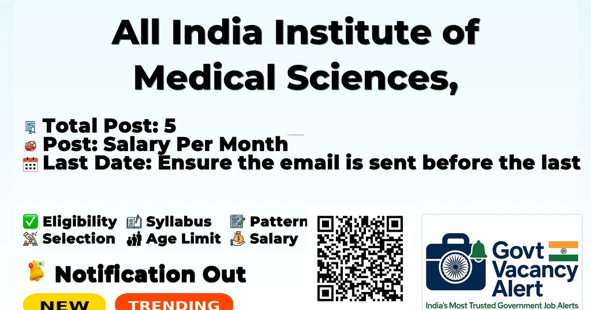 Company Name All India Institute of Medical Sciences, Rishikesh (AIIMS Rishikesh) Post Name Study Coordinator/ Project Research Scientist , CRC/ Project Technical Support -III, Project Nurse, Laboratory Technician, Field worker/ Project Technical Support I No of Posts 5 Advt No 24783 Salary Rs. 16,793/- - Rs. 65,332/- Per Month Qualification MBBS/MVSc/BDS/BHMS/BAMS, (ANM) Or BMLT/DMLT Or Master's Degree in Social Work (MSW) Age Limit Max: 35 years Last Date 11-03-2026 Apply Mode Email Job Type Contract