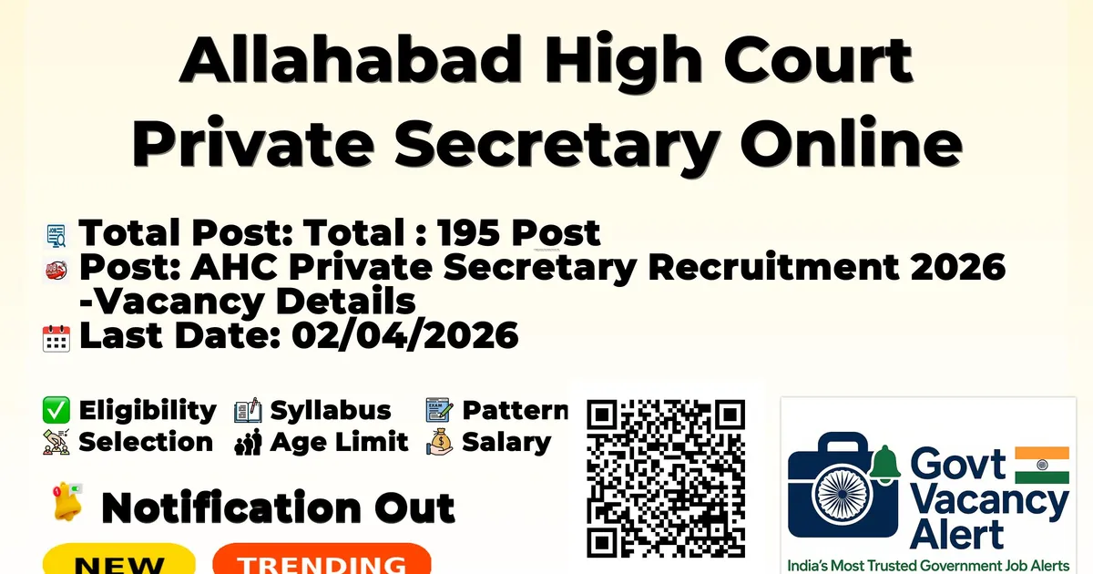 Allahabad High Court Private Secretary Online Form 2026 — AHC Private Secretary Recruitment 2026 Vacancy Details