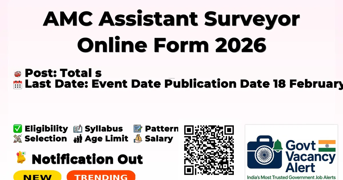 Ahmedabad Municipal Corporation (AMC) has released an official notification for the recruitment of 03 Assistant Surveyor Posts. Interested and eligible candidates can apply Online through the official AMC website. The last date to submit the application form is 05-03-2026. In this article, you’ll find the AMC Assistant Surveyor Posts recruitment details, including eligibility criteria, age limit, salary structure, selection process, application steps, and direct links to the official notification and Online application form.