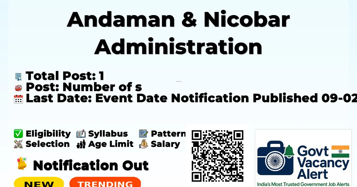 Andaman and Nicobar Administration has released an official notification for the recruitment of 01 Assistant Engineer Posts. Interested and eligible candidates can apply Offline through the official Andaman and Nicobar Administration website. The last date to submit the application form is 25-02-2026. In this article, you’ll find the Andaman and Nicobar Administration Assistant Engineer Posts recruitment details, including eligibility criteria, age limit, salary structure, selection process, application steps, and direct links to the official notification and Offline application form.