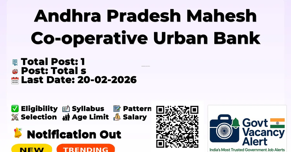 Andhra Pradesh Mahesh Co operative Urban Bank (AP Mahesh Bank)has released an official notification for the recruitment Branch Manager Posts. Interested and eligible candidates can apply Online through the official AP Mahesh Bank website. The last date to submit the application form is 20-02-2026. In this article, you’ll find the AP Mahesh Bank Branch Manager Posts recruitment details, including eligibility criteria, age limit, salary structure, selection process, application steps, and direct links to the official notification and Online application form.