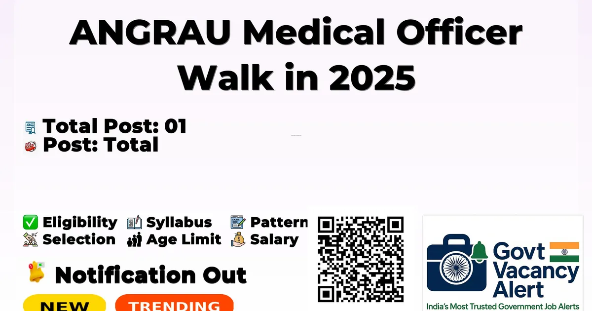 Acharya NG Ranga Agricultural University (ANGRAU) Recruitment 2025 for 01 posts of Medical Officer. Candidates with MBBS Can attend the walkin. The Walk-in on 30-10-2025. For detailed information please visit ANGRAU official website, angrau.ac.in.