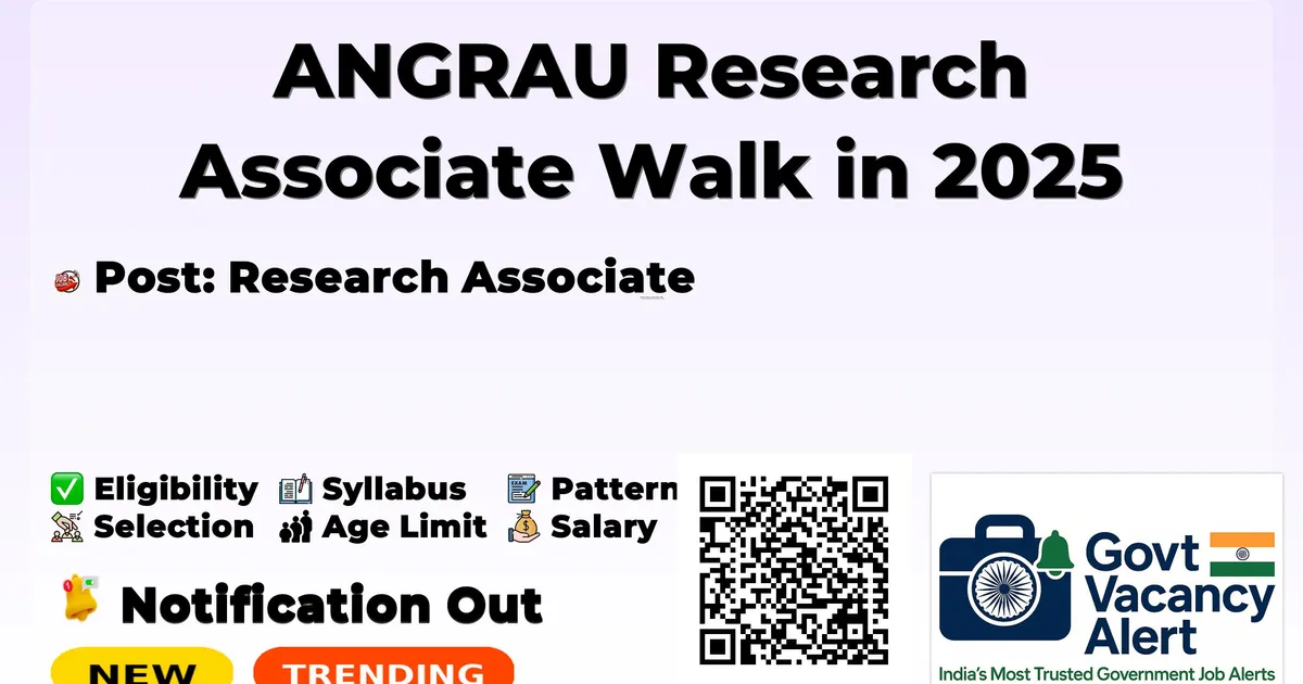 Acharya NG Ranga Agricultural University (ANGRAU) Recruitment 2025 for 01 posts of Research Associate. Candidates with M.E/M.Tech, M.Phil/Ph.D Can attend the walkin. The Walk-in on 28-11-2025. For detailed information please visit ANGRAU official website, angrau.ac.in.