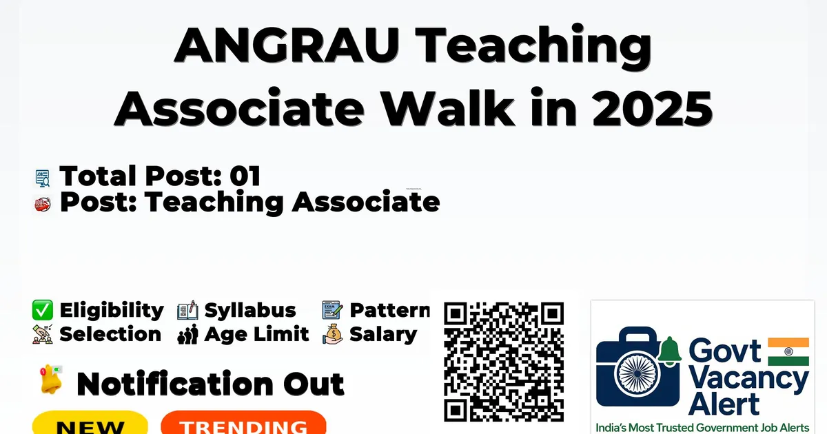 Acharya NG Ranga Agricultural University (ANGRAU) Recruitment 2025 for 01 posts of Teaching Associate. Candidates with Any Masters Degree, M.Phil/Ph.D Can attend the walkin. The Walk-in on 22-09-2025. For detailed information please visit ANGRAU official website, angrau.ac.in.