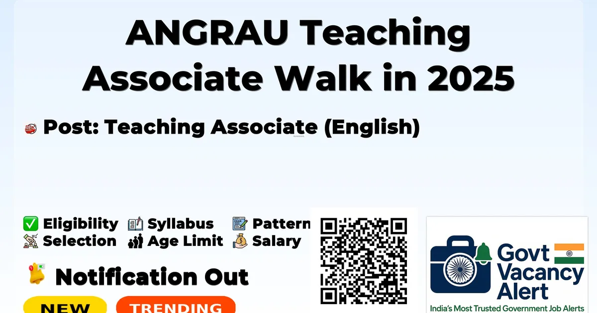 Acharya NG Ranga Agricultural University (ANGRAU) Recruitment 2025 for 01 posts of Teaching Associate. Candidates with B.A, M.A Can attend the walkin. The Walk-in on 05-12-2025. For detailed information please visit ANGRAU official website, angrau.ac.in.