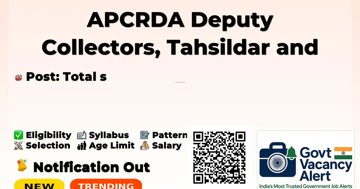 Andhra Pradesh Capital Region Development Authority (APCRDA) has released an official notification for the recruitment of 17 Deputy Collectors, Tahsildar and More Posts. Interested and eligible candidates can apply Online through the official APCRDA website. The last date to submit the application form is 02-12-2025. In this article, you’ll find the APCRDA Deputy Collectors, Tahsildar and More Posts recruitment details, including eligibility criteria, age limit, salary structure, selection process, application steps, and direct links to the official notification and Online application form.