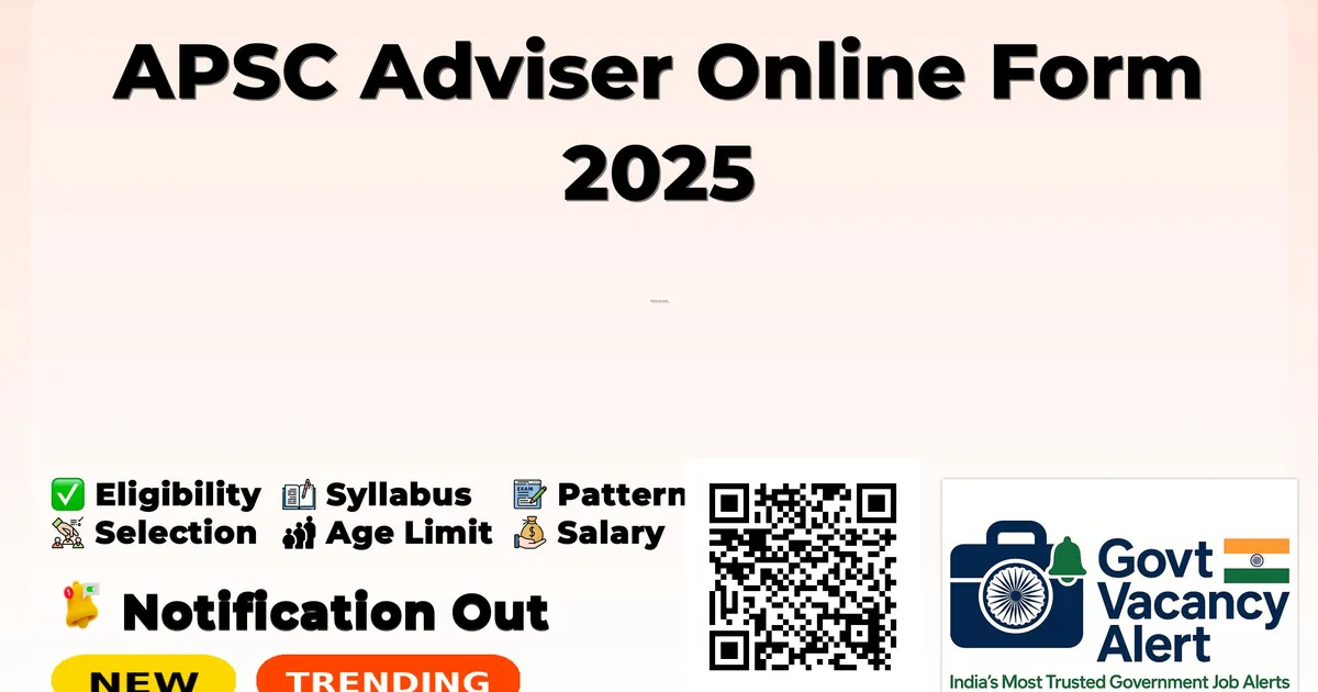 Assam Public Service Commission (APSC) has released an official notification for the recruitment of 01 Adviser Posts. Interested and eligible candidates can apply Online through the official APSC website. The last date to submit the application form is 23-11-2025. In this article, you’ll find the APSC Adviser Posts recruitment details, including eligibility criteria, age limit, salary structure, selection process, application steps, and direct links to the official notification and Online application form.