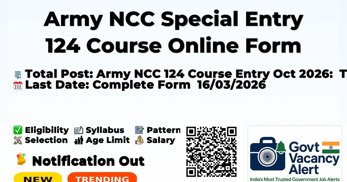 Army NCC Special Entry 124 Course Online Form 2026 — Latest Government Job