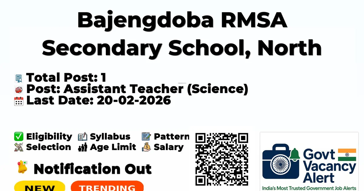 Bajengdoba RMSA Secondary School has released an official notification for the recruitment of 01 Assistant Teacher Posts. Interested and eligible candidates can apply Offline through the official Bajengdoba RMSA Secondary School website. The last date to submit the application form is 28-02-2026. In this article, you’ll find the Bajengdoba RMSA Secondary School Assistant Teacher Posts recruitment details, including eligibility criteria, age limit, salary structure, selection process, application steps, and direct links to the official notification and Offline application form.