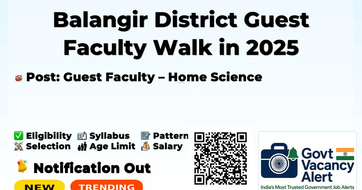 Details Information Organization Name Government Women’s Higher Secondary School, Titilagarh (Balangir District) Post Name Guest Faculty – Home Science Total Vacancies Not specified (Guest Faculties against leave vacancy) Educational Qualification Master Degree with 50% marks or equivalent grade; B.Ed or equivalent degree recognized by NCTE; Basic computer knowledge required Walk-in Date 15/12/2025 Application Mode Walk-in reporting at the Office of the Principal Official Website balangir.odisha.gov.in