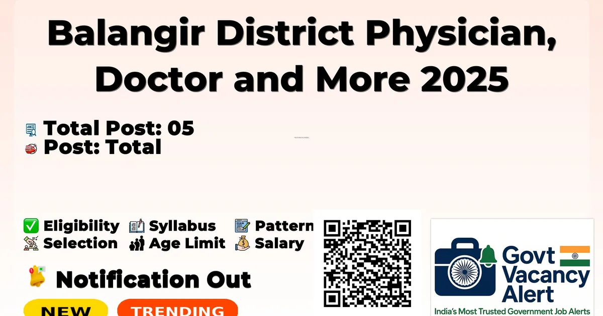 Advertisement Balangir District Recruitment 2025 for 05 posts of Physician, Doctor and More. Candidates with MBBS, Diploma, MS/MD Can attend the walkin. The Walk-in on 11-11-2025. For detailed information please visit Balangir District official website, balangir.odisha.gov.in.