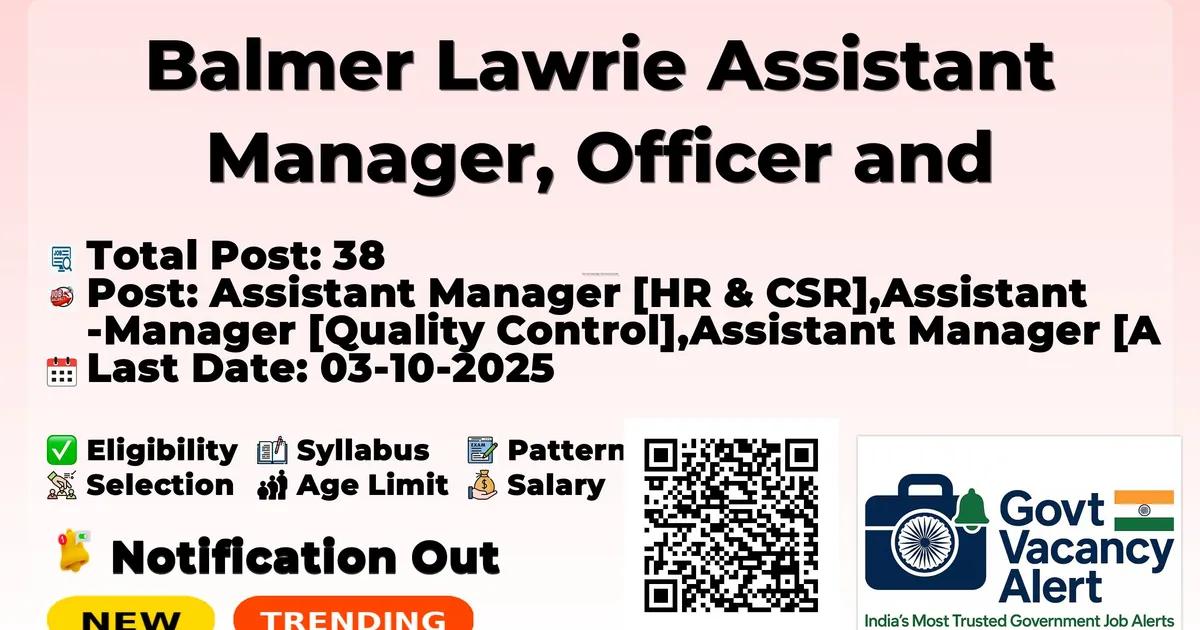 The Balmer Lawrie Assistant Manager, Officer and Other Recruitment 2025 Notification PDF has been released on 09-09-2025 at balmerlawrie.com. Check the complete job details, vacancy, age limit, application fee, selection process and how to apply from the article. You can Check all Latest Sarkari Result Updates of All Central Government Jobs and State Government Jobs.