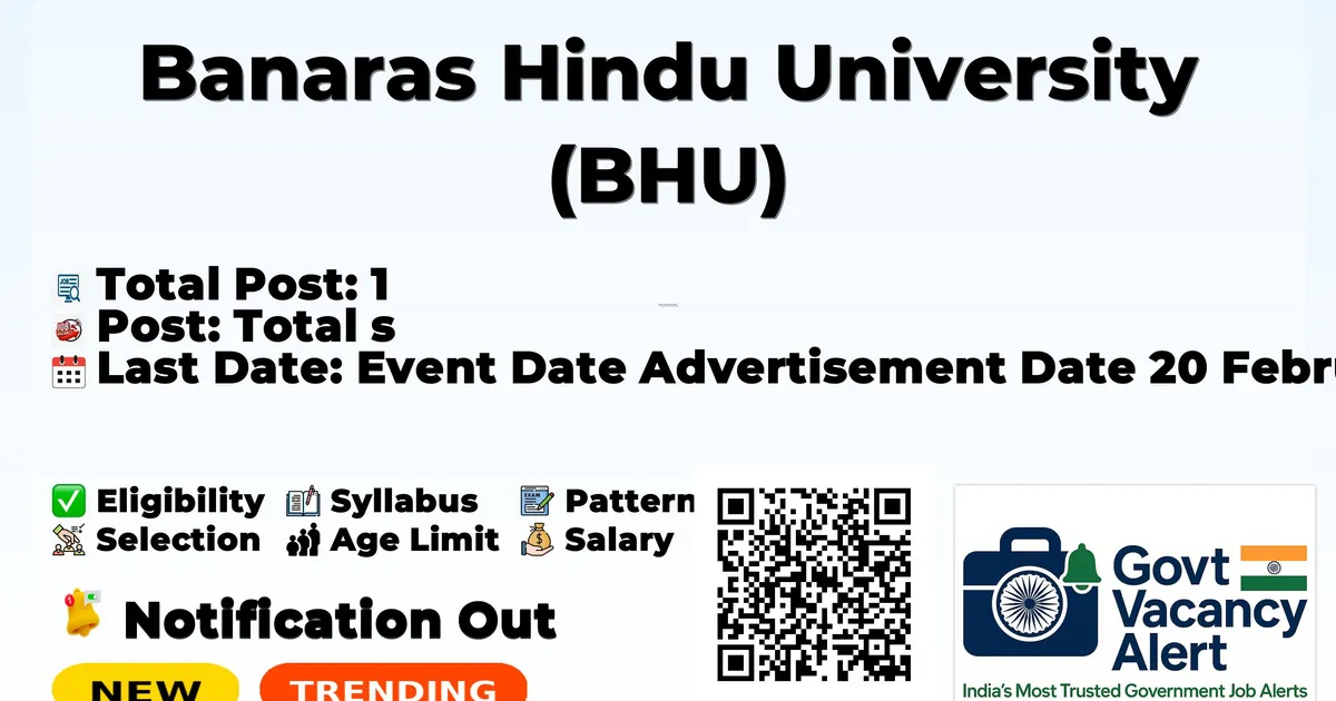 Banaras Hindu University (BHU) has officially released a notification for the recruitment of 1 Senior Research Fellow (SRF) Posts. This recruitment drive offers a great opportunity for candidates looking for government jobs. Interested and eligible candidates can apply by sending their resume and documents to the official email address.