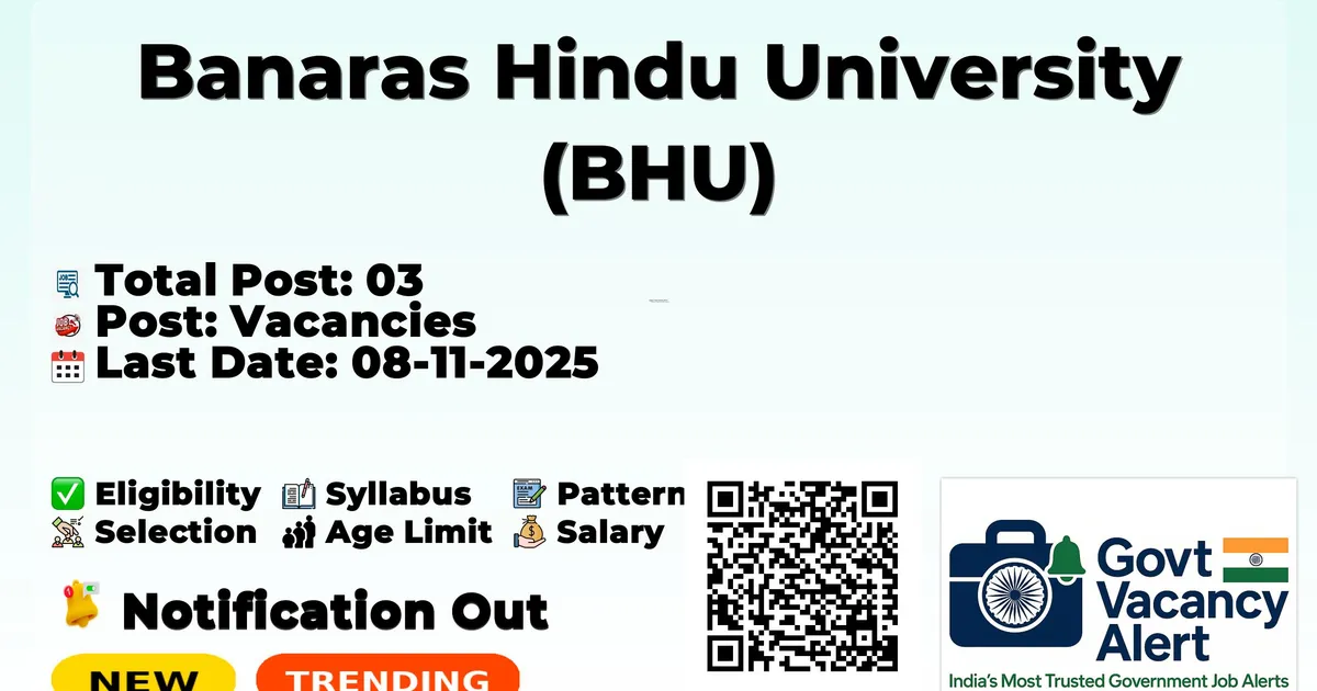 Company Name Banaras Hindu University (BHU) Post Name Field Investigator, Research Assistant and More No of Posts 03 Pay Matrix Rs. 20,000-47,000 Qualification M.A Last Date for Apply 08-11-2025 Official Website bhu.ac.in