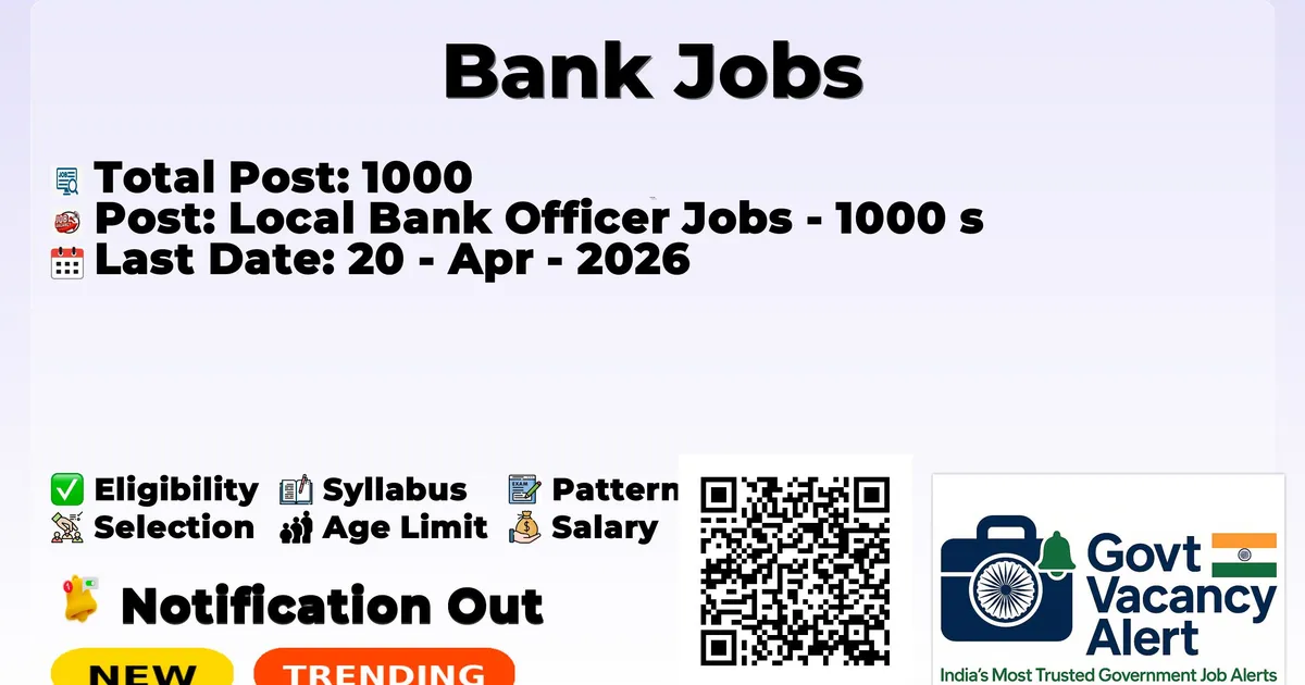 Punjab and Sind Bank has declared the official notification for the recruitment of 1000 Local Bank Officer Jobs. Those candidates who have qualified for any degree can grab this chance and apply for the Punjab and Sind Bank Jobs 2026. Here we included the age limit, selection process, salary structure, education details, applciation fee, and how to apply for these posts.