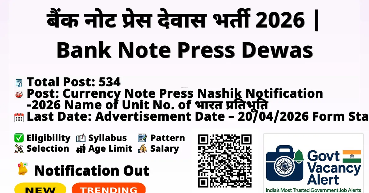 बैंक नोट प्रेस देवास भर्ती 2026 | Bank Note Press Dewas Recruitment 2026