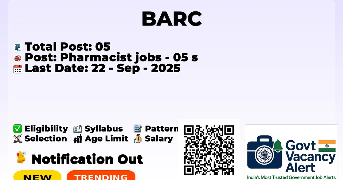 The Bhabha Atomic Research Centre (BARC) has officially released the notification to fill the vacancies of 05 Pharmacist Posts. Interested and eligible candidates can use this opportunity to apply for these posts before the last date of application. Candidates who have completed their B. Pharm, D. Pharm, and 12th can apply for the BARC Recruitment 2025. The interested applicants can attend the walk-in interview. Here we have mentioned the education details, age limit, selection process, application fee, salary, and how to apply for these posts before the deadline. The application dates have already begun.