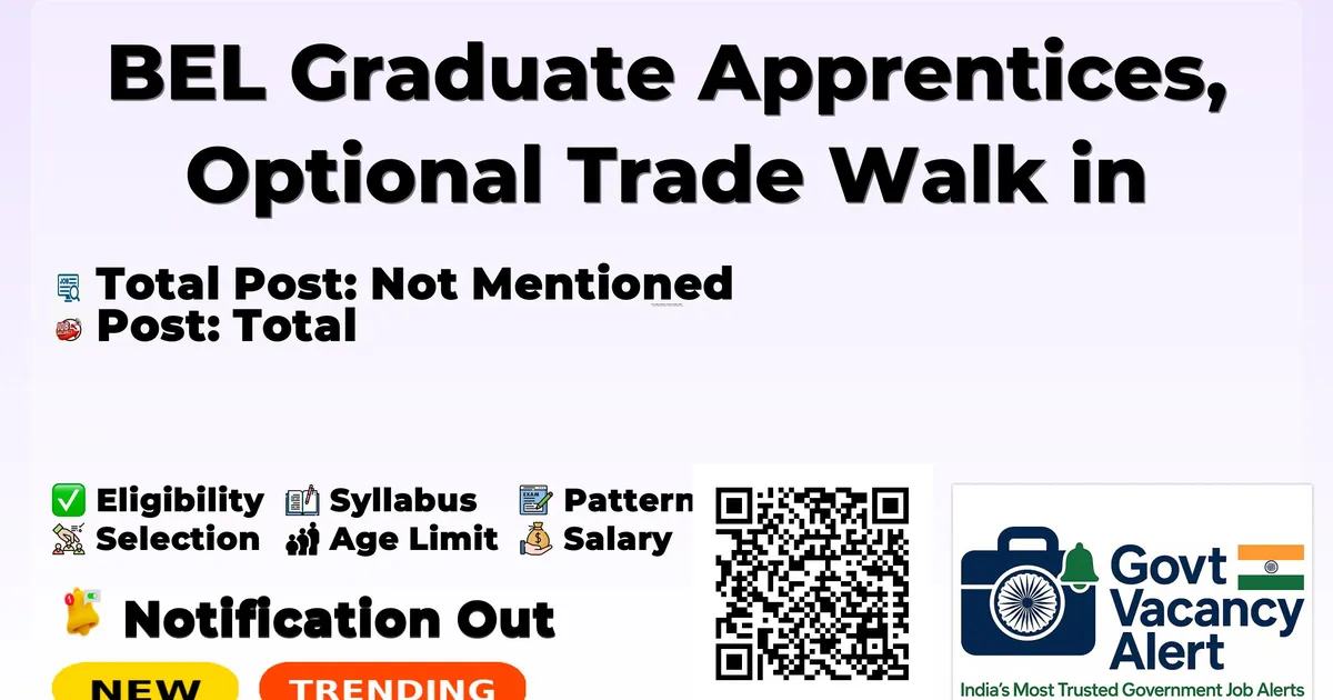 Bharat Electronics (BEL) Recruitment 2025 for posts of Graduate Apprentices, Optional Trade. Candidates with B.Tech/B.E Can attend the walkin. The Walk-in starts from Available Soon, and ends on 22-11-2025. For detailed information please visit BEL official website, bel-india.in.