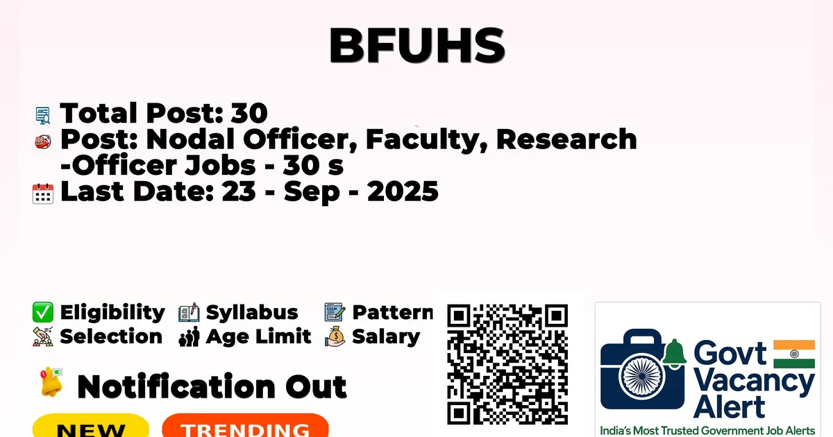 BFUHS — Nodal Officer, Faculty, Research Officer Jobs - 30 Posts