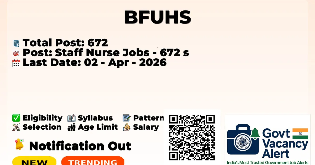 The Baba Farid University of Health Sciences (BFUHS) has officially released the notification to fill the vacancies of 672 Staff Nurse Posts. Interested and eligibile candidates can use this opportunity to apply for these posts before the last date of application. Candidates who have completed their GNM and B.Sc Nursing can apply for the BFUHS Notification 2026. The interested applicants can apply in online mode. Here we have mentioned the education details, age limit, selection process, application fee, salary, and how to apply for these posts before the deadline. The application dates have already begun.