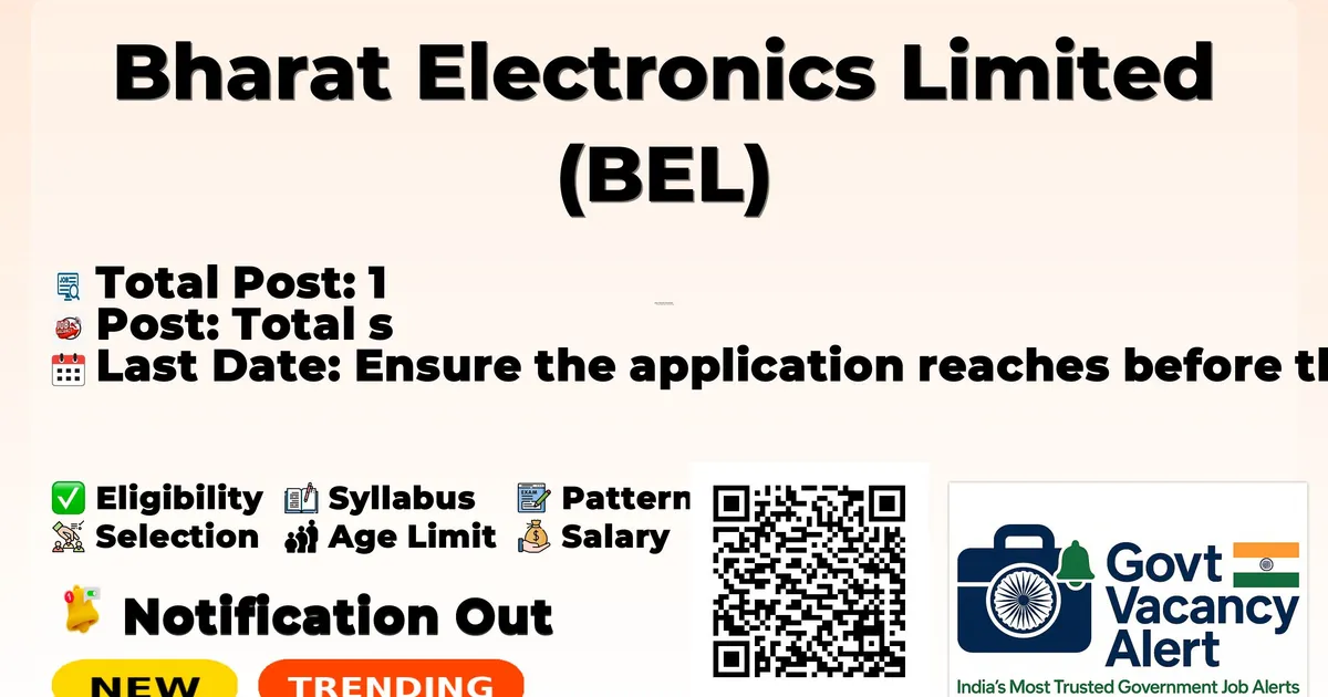 Bharat Electronics Limited (BEL) has released an official notification for the recruitment of 1 Assistant Manager, Deputy Manager Posts. Interested and eligible candidates can apply Offline by sending the application form to the official address. The last date to submit the application is 01-04-2026. Advertisement Company Name Bharat Electronics Limited (BEL) Post Name Assistant Manager, Deputy Manager No of Posts 1 Advt No 383/HR/CSG/Rec/Legal/2025-26 Salary Rs. 50,000 - Rs. 1,60,000 Per Month Qualification Bachelor’s Degree in Law (LL.B / B.L), LLM (Preference) Age Limit Max: 32 years Last Date 01-04-2026 Apply Mode Offline Job Type Full Time Candidates who are interested in applying for the BEL Recruitment 2026 should first download and carefully read the official notification PDF. The notification contains complete details about vacancy distribution, eligibility criteria, age limit, stipend/salary, selection process, important dates, and application instructions. Reading the official document is important to ensure that you meet all requirements before submitting the application form. Download BEL Assistant Manager (Legal) Job 2026 Notification PDF Post Name Total Posts Assistant Manager, Deputy Manager 1 Total 1 Trending Govt Jobs SSB Odisha Junior Assistant and Junior Clerk Online Form 2026 IDBI Bank Junior Assistant Manager Online Form 2026 AIIMS NORCET 10 Online Form 2026 HPCL 731 Engineers, JEA and More Online Form 2026 Indian Navy Agniveer SSR, MR & SSR (Medical) Online Form 2026 Bachelor’s Degree in Law (LL.B / B.L) from a recognized Indian University. Preference will be given to candidates with an LLM degree. General candidates should have First Class, and PwBD candidates should have Pass class. 4 to 5 years of post-qualification relevant experience is required in areas such as customs clearance, classification, FTP, SEZ, EPCG, drafting, and court/tribunal appearances. Category Fee General/OBC Rs. 708/- (Rs. 600 + 18% GST) SC/ST Nil Maximum Age Limit: 32 years. Age Relaxation: PwBD candidates can avail relaxation of +10 years, and Ex-Servicemen will be granted relaxation as per Government guidelines. The selected candidates will receive a salary in the range of Rs. 50,000 to Rs. 1,60,000 per month. Event Date Date of Advertisement 11 March 2026 Last date for receipt of application by post 01 April 2026 Written Test (85 marks) Interview (15 marks) Candidates who wish to apply for BEL Assistant Manager (Legal) Recruitment 2026 through offline mode should follow the steps below. Read the official notification carefully before applying. Download the application form from the official website: www.bel-india.in. Fill the application form carefully with correct information. Attach self-attested copies of required documents such as photograph, signature, ID proof, and certificates. Check all details carefully before submission. Send the completed application form to the address mentioned in the notification through Speed Post / Registered Post or as instructed. Ensure the application reaches before the last date: 01-04-2026. Keep a photocopy of the submitted application form for future reference. Link Description Link Official Notification PDF Click here Official Website Click here