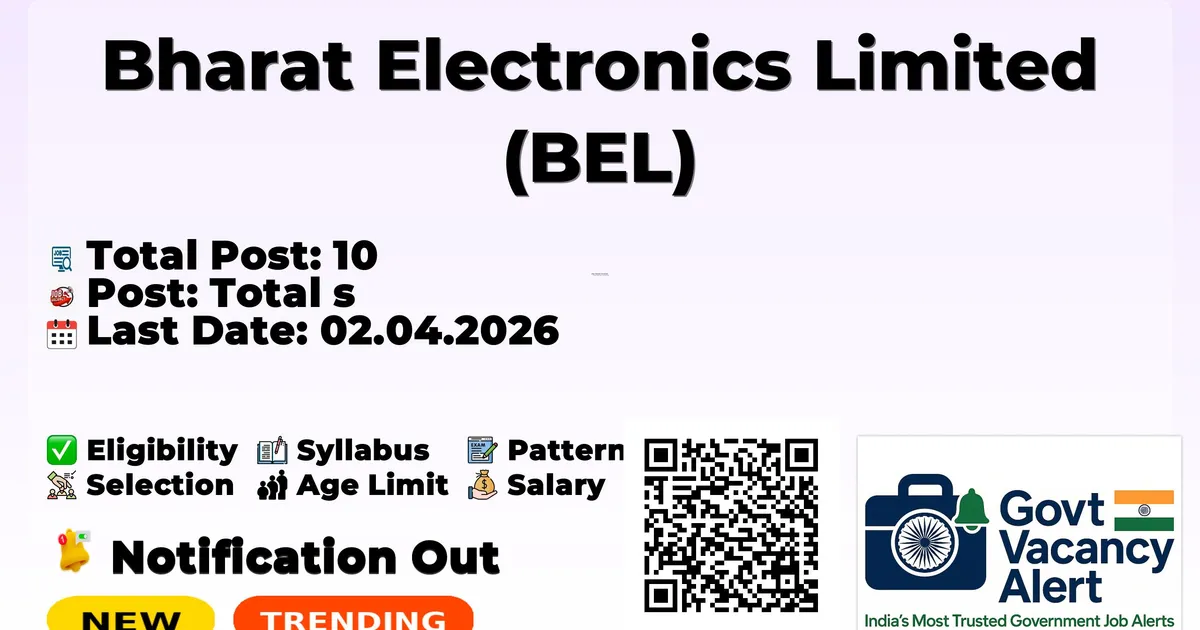 Bharat Electronics (BEL) has released an official notification for the recruitment of 10 Member Posts. Interested and eligible candidates can apply Offline through the official BEL website. The last date to submit the application form is 02-04-2026. In this article, you’ll find the BEL Member Posts recruitment details, including eligibility criteria, age limit, salary structure, selection process, application steps, and direct links to the official notification and Offline application form. Advertisement Company Name Bharat Electronics Limited (BEL) Post Name Member (Research Staff) No of Posts 10 Advt No 4926/M(RS)/HR/CRL-GAD/ALL-INDIA/2026-27 Salary Rs.50,000/- 3% - Rs.1,60,000 + admissible allowances (5 advance increments & 2 years seniority at entry level) Qualification PhD in specified domains from recognized University/Colleges Age Limit 37 years (GEN) as on 01.01.2026 Start Date for Apply Applications open Last Date for Apply 02.04.2026 Official Website www.bel-india.in Trending Govt Jobs IAF Agniveer New Recruitment 2026 UPSC CSE Online Form 2026 DSSSB 911 AE, JE & More Online Form 2026 RRB 22000 Group D Online form 2026 MCL 677 Various Vacancies Online Form 2026 Post Name Total Posts Member (Research Staff) E-III Grade 10 Domain-wise breakup: Aerospace/Civil Aviation (1), AI (3), Communication (3), Cyber Security (1), Robotics/Autonomous Systems (1), Quantum Technology (1) Essential Qualification: PhD degree awarded in Aerospace / Civil Aviation, AI, Communication, Cyber Security, Robotics/Autonomous Systems or Quantum Technology from recognized University / Colleges. Desirable Post Qualification Research Experience: Minimum 4 years post qualification Industry experience (as per Table-1 in notification). Only relevant post-qualification industrial experience will be considered. Academic/Teaching/Research work, banking, internship, contractual in BEL/other PSUs not considered as relevant experience. Member (Research Staff) E-III Grade: Rs.50,000/- 3% - Rs.1,60,000 + admissible allowances. 5 advance increments and 2 years’ seniority will be added at the entry level. Other perks: Dearness Allowance, HRA (35% of Basic as perquisites), Performance Related Pay, Medical Reimbursement, PF, Gratuity, Superannuation Pension, Group Insurance etc. as per Company rules. Maximum Age: 37 years for GEN candidates. Age relaxation: 3 years for OBC(NCL), 5 years for SC/ST, 10 years for PwBD (as per Government guidelines). GEN / OBC(NCL): ₹750/- (Non-refundable) SC / ST / PwBD: Exempted Payment through SBI Collect only. Particulars Date Notification Date 25.02.2026 Last Date for Receipt of Application 02.04.2026 Written Test Shortlisting for Interview in 1:7 ratio based on written test score (merit & category wise) Final selection based on performance in Written Test + Interview Call letters sent through email only Only Indian nationals need apply. Canvassing in any form will result in disqualification. BEL reserves the right to debar/disqualify any candidate or cancel the entire recruitment at any stage. Applicants working in PSUs/Govt. must submit NOC at the time of interview. Outstation candidates (except NCR) will be reimbursed II class travel fare. All correspondence will be through registered email only. Download application format from www.bel-india.in Fill the application completely and attach self-attested copies of all required documents. Pay application fee through SBI Collect. Send the application by post to: Deputy General Manager (HR&A/CRL), Central Research Laboratory, Bharat Electronics Limited, Site IV, Industrial Area, Sahibabad, Ghaziabad – 201010 (UP). Superscribe the envelope: “Application for the post of Member (Research Staff) in E-III Grade”. Last date for receipt: 02.04.2026. Application Form: Click here Official Notification PDF: Click here Official Website: Click here Join Arattai Channel: Click Here Join Telegram Channel: Click Here Join WhatsApp Channel: Click Here Sarkari Result: Click Here Download Mobile App: Click Here