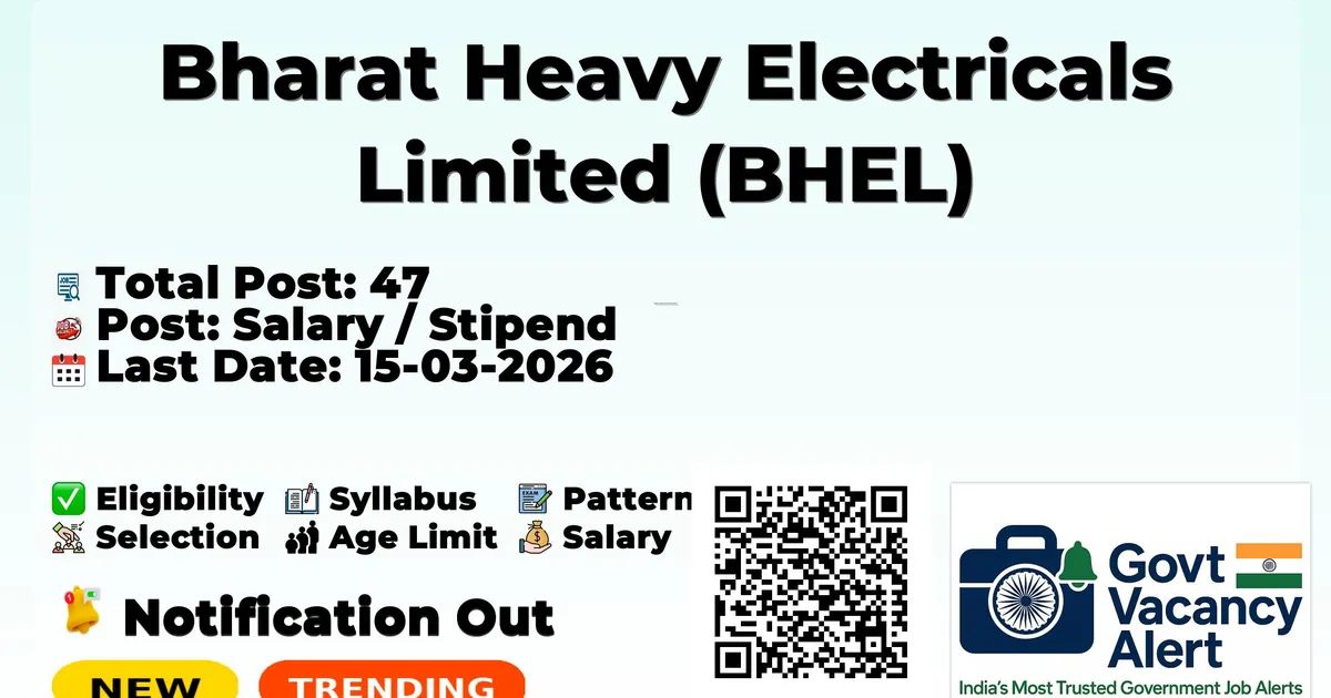 Bharat Heavy Electricals (BHEL Jhansi) has released an official notification for the recruitment of 47 Apprentice Posts. Interested and eligible candidates can apply Online through the official BHEL Jhansi website. The last date to submit the application form is 15-03-2026. In this article, you’ll find the BHEL Jhansi Apprentice Posts recruitment details, including eligibility criteria, age limit, salary structure, selection process, application steps, and direct links to the official notification and Online application form.