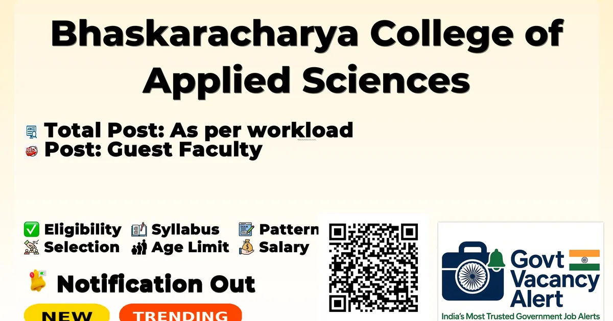 Bhaskaracharya College of Applied Sciences (Delhi University BCAS) Recruitment 2026 for posts of Guest Faculty. Candidates Can attend the walkin. The Walk-in on 23-01-2026. For detailed information please visit Delhi University BCAS official website, du.ac.in.