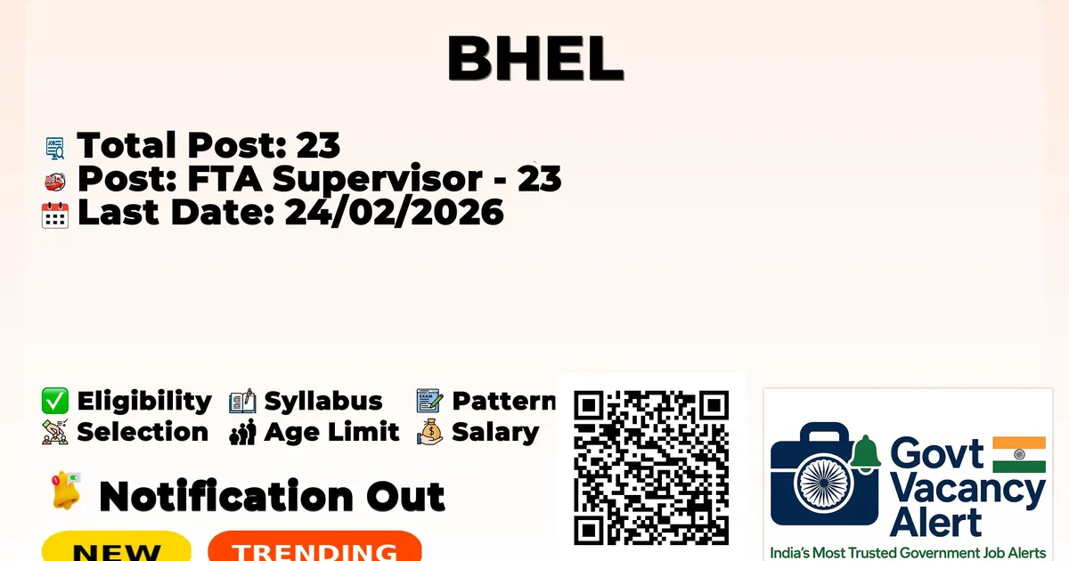 | Post Name | FTA Supervisor (Grade III) - Fixed Tenure (2 Years) |